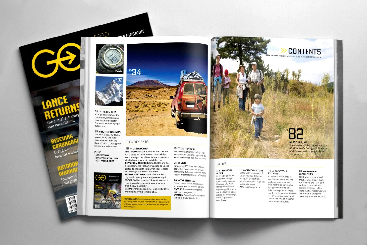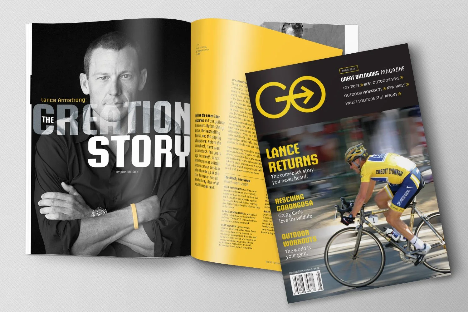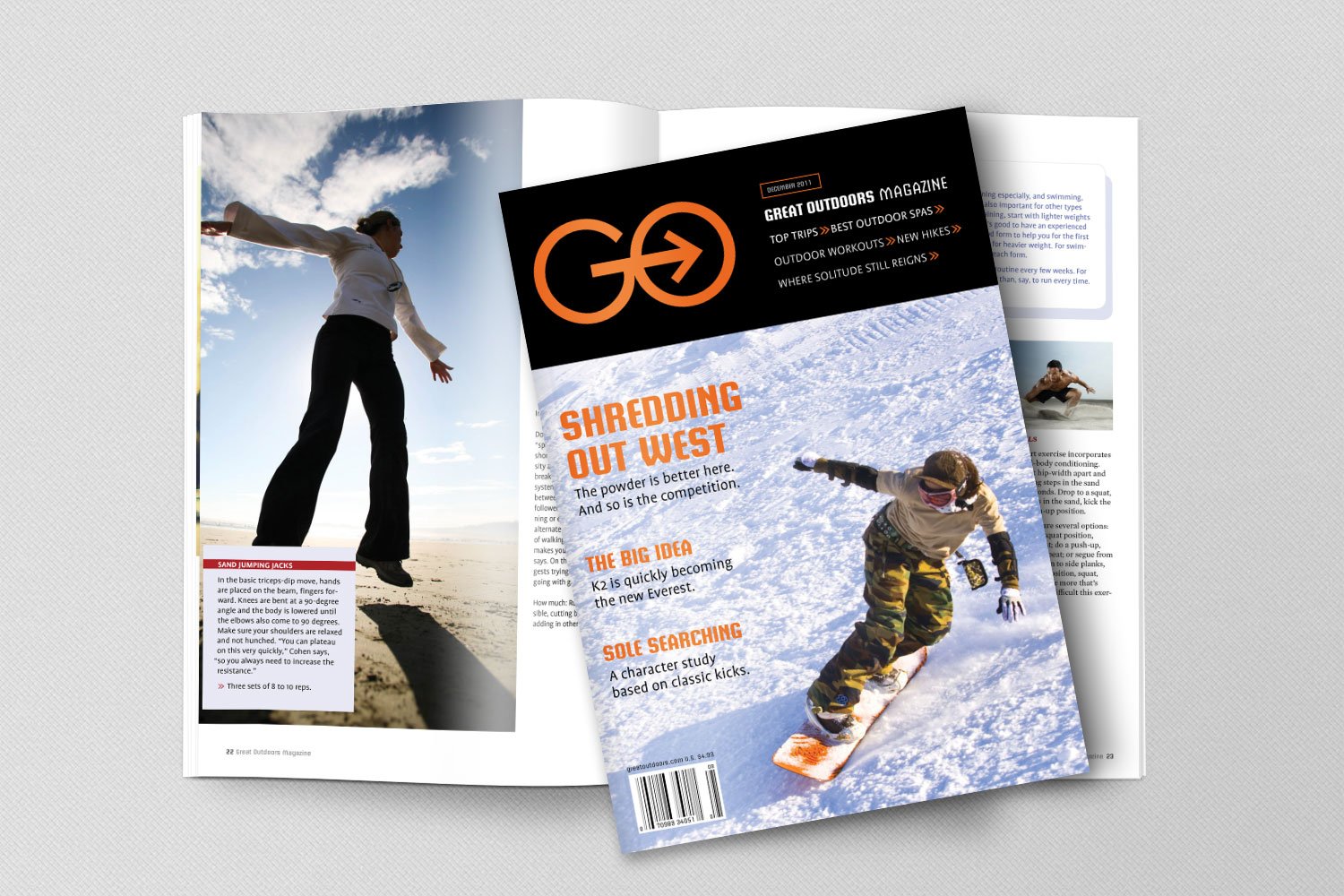 Go Magazine is a conceptual contemporary lifestyle magazine for the active adult. The goal of the editors is to inspire their audience to enjoy fuller, more rewarding lives through the magazine’s coverage of participatory sports, travel, products, adventure, people, politics, art, and literature of the great outdoors.